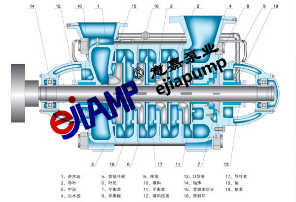 D型臥式多級離心泵結(jié)構(gòu)說明: