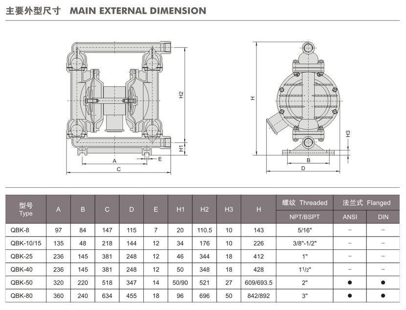 QBK第三代氣動隔膜泵規(guī)格表:
