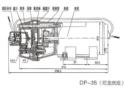 2.裝有隨泵附帶的進(jìn)出口接頭,DP-130 DP-125 DP-100 DP-60型微型隔膜泵進(jìn)出口采用ZG3/8″外牙G29/64″彎管接頭;DP-35微型隔膜泵進(jìn)出口采用3/8″外牙軟管接頭.