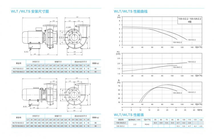 WLT泵軸與電機(jī)軸采用同軸聯(lián)接,占地面積小,重量輕;WLTS采用直聯(lián)型聯(lián)接加長(zhǎng)軸結(jié)構(gòu)。
