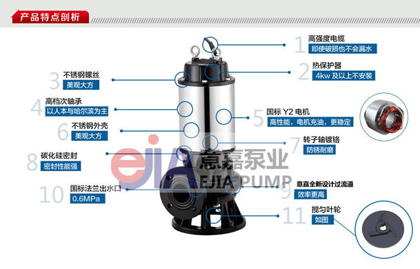 三、JYWQ自動(dòng)攪勻排污泵--產(chǎn)品介紹:(污水型)