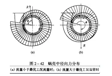 由于蝸殼的端面中的壓力不相等,因此在葉輪上產(chǎn)生徑向力。