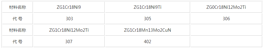 泵的溢流部分的主要部分的材料及其代號有以下五種類型: