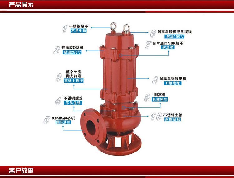 二,80WQR65-25-7.5耐高溫潛水排污泵 - 產(chǎn)品特點: