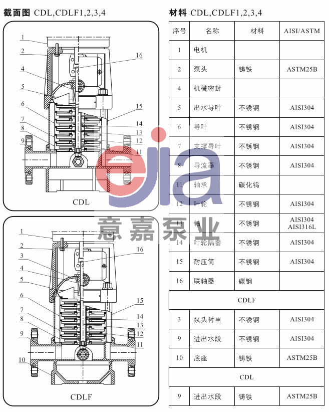 CDLF不銹鋼立式多級泵解剖圖