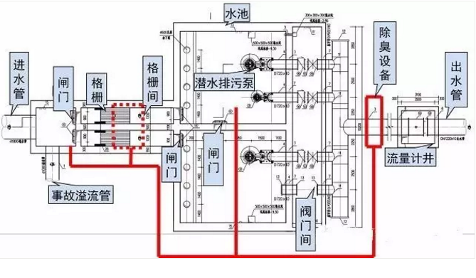 進(jìn)水管線:站外污水進(jìn)入泵站