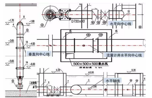d、檢查閥門間套管中心線與泵水平向中心線是否一致,檢查流量計(jì)井內(nèi)套管中心線是否一致。