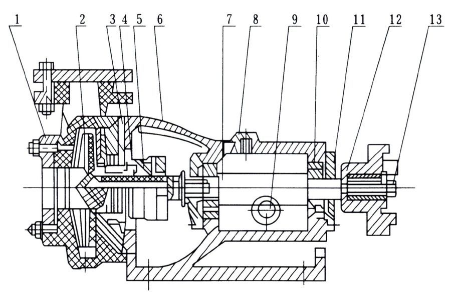 2.將本泵放置水平位置上接上進(jìn)、出管和接通電源.最后用手盤動聯(lián)軸器.檢査有無碰擦現(xiàn)象.轉(zhuǎn)動輕松均勻則安裝結(jié)束。