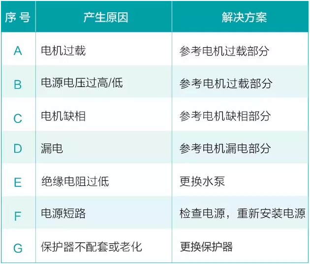 如果所配套的電源保護(hù)器與水泵電機(jī)是吻合的,在正常情況下,保護(hù)器是不會(huì)跳閘的。保護(hù)器跳閘的主要原因有: