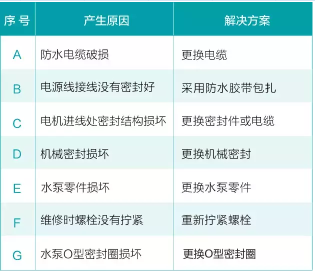 2、水泵電機(jī)電源線接線沒(méi)有密封好進(jìn)水;