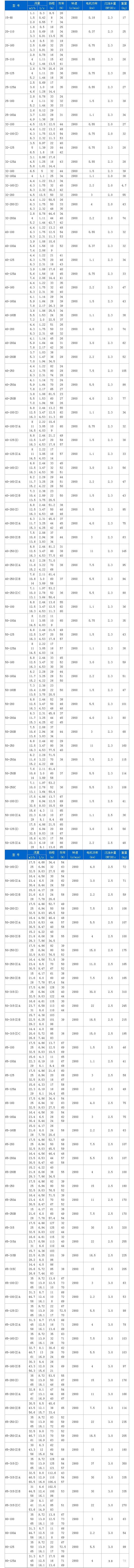 YG型管道油泵-部分參數(shù):