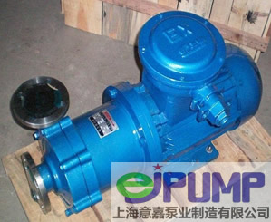 意嘉泵業(yè)生產(chǎn)的ejiamp牌100CQ-50磁力驅(qū)動泵是利用永磁聯(lián)軸器工作原理無接觸的傳遞扭矩的新型泵,當(dāng)原動機(jī)帶動外磁鋼轉(zhuǎn)子時,通過磁場的作用驅(qū)動內(nèi)磁鋼轉(zhuǎn)子同步旋轉(zhuǎn),而內(nèi)磁鋼轉(zhuǎn)子和葉輪連成一體,從而達(dá)到無接觸帶動葉輪轉(zhuǎn)動之目的。由于液體被封閉在靜止的隔離套內(nèi),所以磁力泵是一種全封閉、無泄漏的泵型,因此完全杜絕了機(jī)械密封離心泵不可避免的跑、冒、滴、漏的弊病。