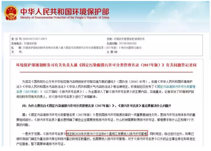 環(huán)保部規(guī)劃財務司有關負責人近日介紹,《固定污染源排污許可分類管理名錄(2017年版)》(以下簡稱排污許可名錄)是排污許可制度改革的一項重要基礎性文件,明確了哪些企業(yè)需要持有排污許可證、什么時候需要取得排污許可證、管理要求有什么區(qū)別。