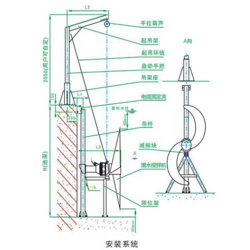 七、QJB潛水推流器的安裝系統(tǒng):