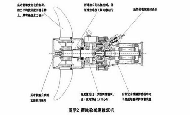 2、我公司研制的潛水推流器,采用硬齒面齒輪減速機傳動,擺脫了之前用擺線減速機傳動引起的噪音大,晃動劇烈的缺陷。同時,我公司積極研發(fā)和改進了機頭的形式,使其重量更輕,對減速機影響最小。