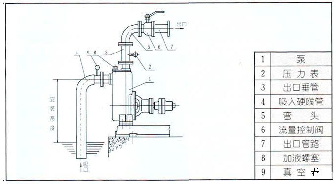 b. 吸入管路中的閥門、法蘭等應(yīng)嚴(yán)防漏氣或滲漏液體,即吸入管路不允許有漏氣現(xiàn)象存在。